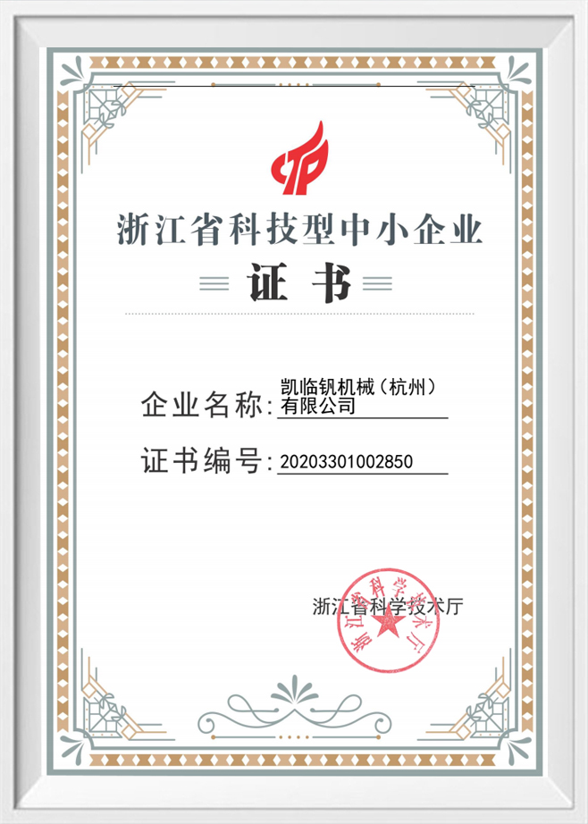 Zhejiang Province Science and Technology Malé a střední podnikové certifikát