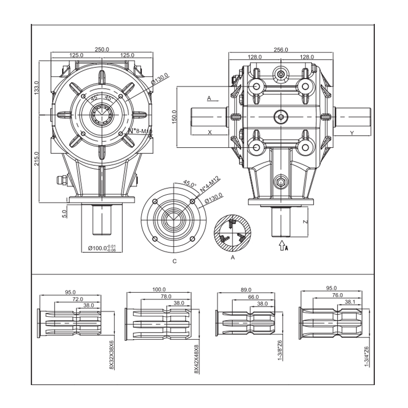 Domov / Produkt / Převodovky pro sekačky na trávu a silážní stroje / KLF-GC250 Vysoce přesná převodovka Gleason Bevel Gears pro stroj na drtiče slámy mulcher, zemědělský zbytkový film pro zotavení