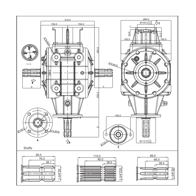 KLF-GC290-B nabízí řadu přenosových poměrů, přizpůsobitelné široké škále různých typů zemědělských strojních zařízení, včetně drtičů slámy a strojů pro recyklaci zemědělských filmů. Ozubená kola Gleason Bevel se vyrábí s vysokou přesností, což zajišťuje vysokou přesnost oka, minimální ztráty přenosu a vysokou účinnost přenosu energie. Produkt je navržen s jednosměrným mechanismem spojky. Během provozu, když je řezací hřídel běží vysokou rychlostí, pokud traktor náhle zastaví vstup napájení, může být setrvačnost řezacího hřídele příliš velká. Jednosměrná spojka účinně chrání ozubená kola a hřídel před poškozením v důsledku této náhlé zastávky.