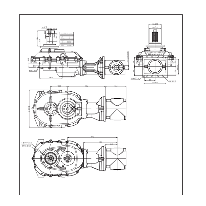 Design převodovky je odvozen od série německého šampiona 3500, převodovky pro stroj na čtyřkolíku. Importovaný původní design, jedna sada vybavená 6 převodovkami. Tento produkt má komplexní konstrukční strukturu a kompaktní prostor a je dodáván se zařízením pro ochranu spojky. Používá se pro sklizeň siláže různých plodin, se šířkou řezů až 3,5 metrů. Sklizeňské disky na obou stranách mají funkci skládání a uvnitř převodovky je spojkové zařízení. Po překročení přednastaveného točivého momentu lze dosáhnout automatického sklouznutí. Tato záhlaví, která chrání vnitřní části před poškozením, má vysokou účinnost sklizně a nízkou míru selhání. Lze jej použít s různými importovanými a domácími traktory, což je dobrá volba, kterou mohou zákazníci důvěřovat.