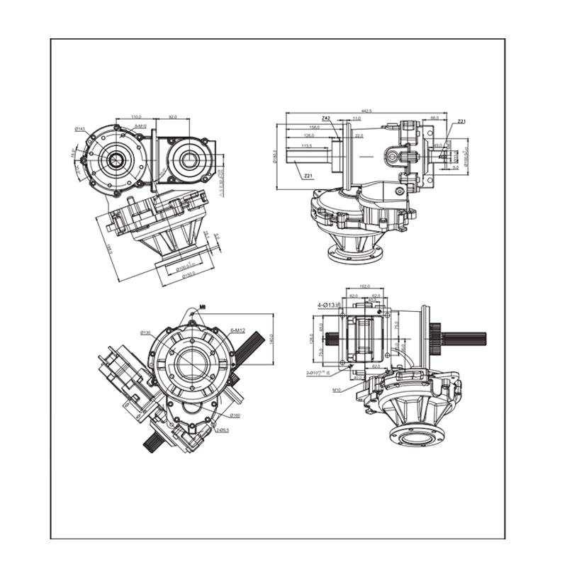Design převodovky je odvozen od série německého šampiona 3500, převodovky pro stroj na čtyřkolíku. Importovaný původní design, jedna sada vybavená 6 převodovkami. Tento produkt má komplexní konstrukční strukturu a kompaktní prostor a je dodáván se zařízením pro ochranu spojky. Používá se pro sklizeň siláže různých plodin, se šířkou řezů až 3,5 metrů. Sklizeňské disky na obou stranách mají funkci skládání a uvnitř převodovky je spojkové zařízení. Po překročení přednastaveného točivého momentu lze dosáhnout automatického sklouznutí. Tato záhlaví, která chrání vnitřní části před poškozením, má vysokou účinnost sklizně a nízkou míru selhání. Lze jej použít s různými importovanými a domácími traktory, což je dobrá volba, kterou mohou zákazníci důvěřovat.