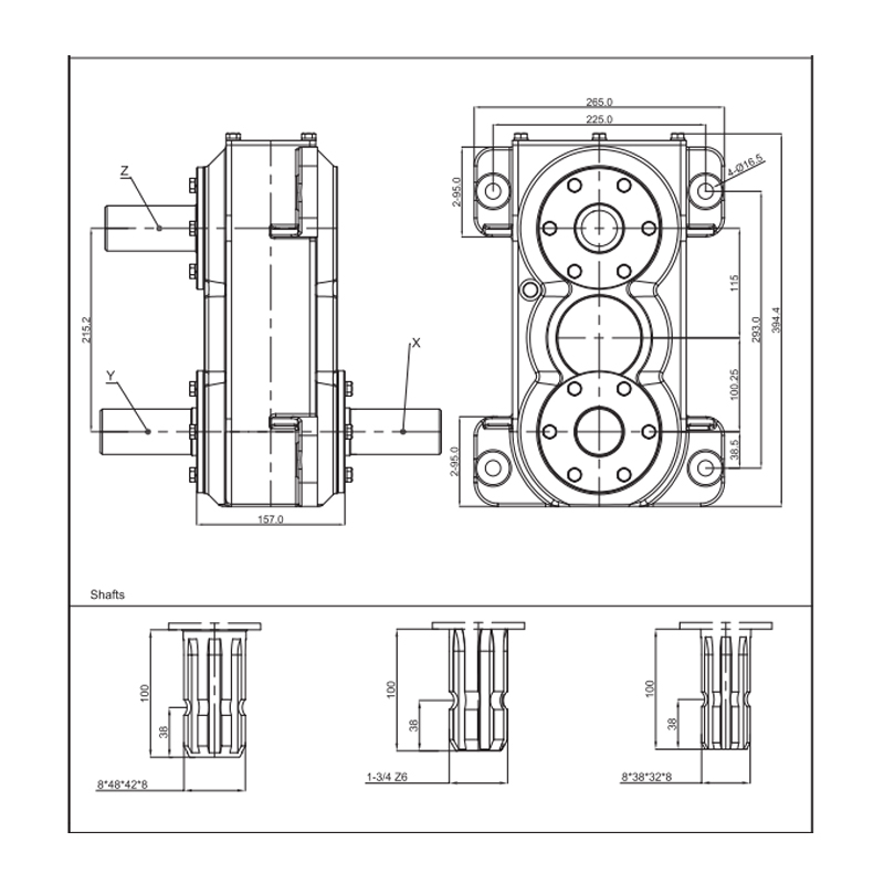 Tato převodovka se používá pro vstup napájení předního traktoru na rozbuchovaném dvouřadém čtvercovém balíku. Napájení je přenášeno do zařízení pro rozdrcení stroje a balingové zařízení přes převodovku. Vyplňte požadavky na úlohu stroje.